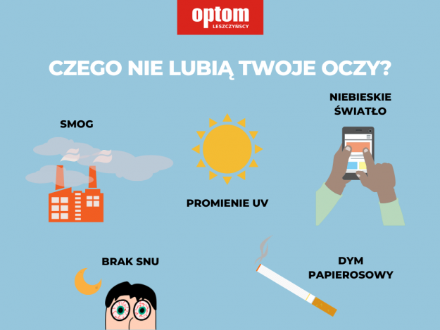 Gałka oczna to bardzo wrażliwy narząd. W starciu z niektórymi czynnikami zewnętrznymi, Twoje oko jest bezbronne – pomimo swych naturalnych barier ochronnych. Nie bez znaczenia pozostają tutaj Twoje złe nawyki i szkodliwe w skutkach działania. W poniższym artykule przedstawiamy szereg czynników, które mają negatywny wpływ na wzrok i funkcjonowanie oka. Smog Długie spacery w smogu…